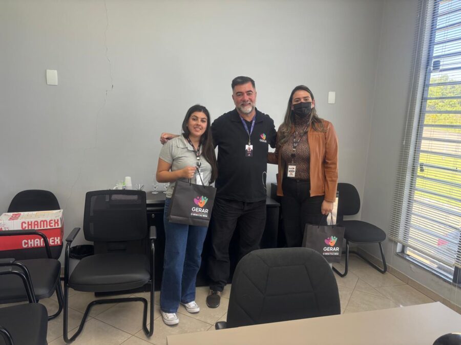 O gerente de Iniciativas Sociais da GERAR, Décio Souza, esteve em Guarapuava (PR) nesta terça-feira, 21 de outubro, para uma série de encontros com empresas locais. Entre elas, destacou-se a reunião com o Grupo Itax, representado por Gabrieli Souto (Gerente de RH) e Paula (Diretora).